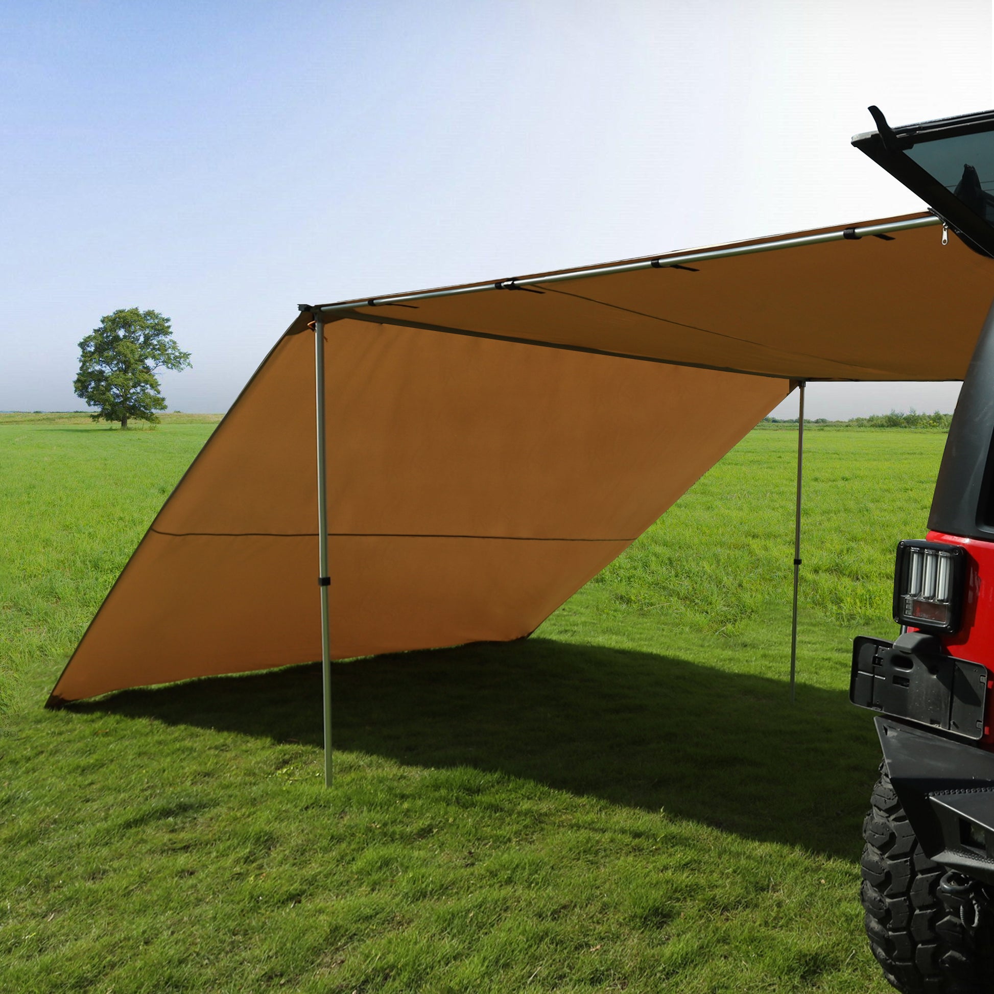 - Same material as vehicle awning, using waterproof 280GSM ripstop polyester with a UPF50+ sun protection rating – it will change the way you camp.