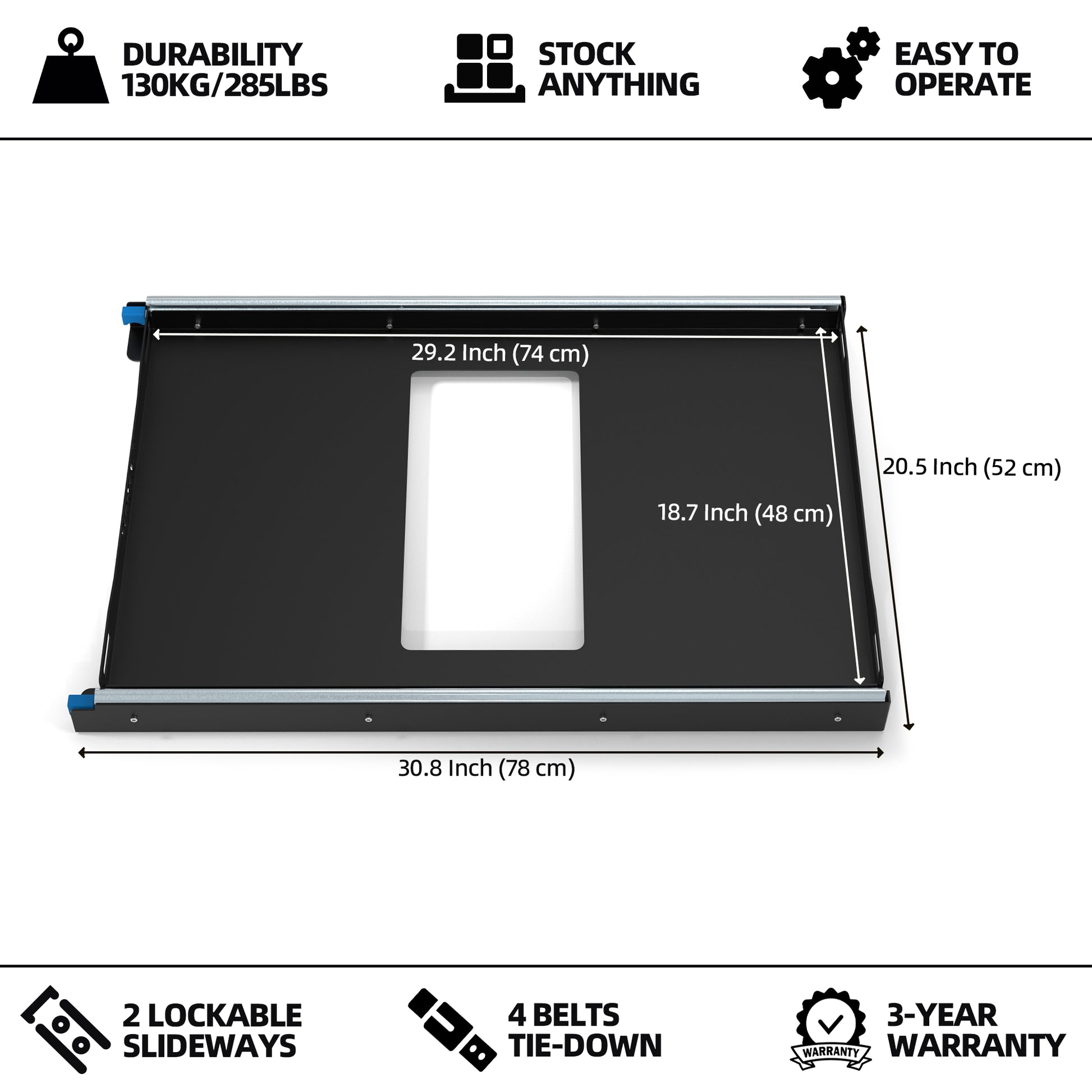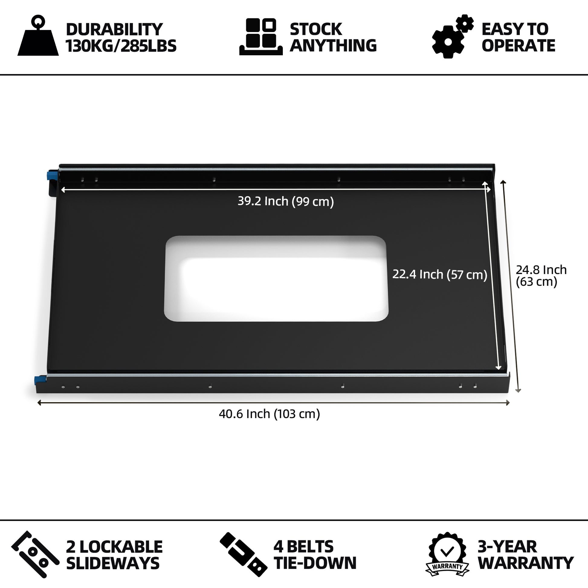 - 【HEAVY STRUCTURE】Max Load Capacity: 130KG / 290Lbs. It also makes a great slide for work tools, generators, storage boxes or other bulky gear you want to quickly and easily access in the back of your vehicle or your trailer.